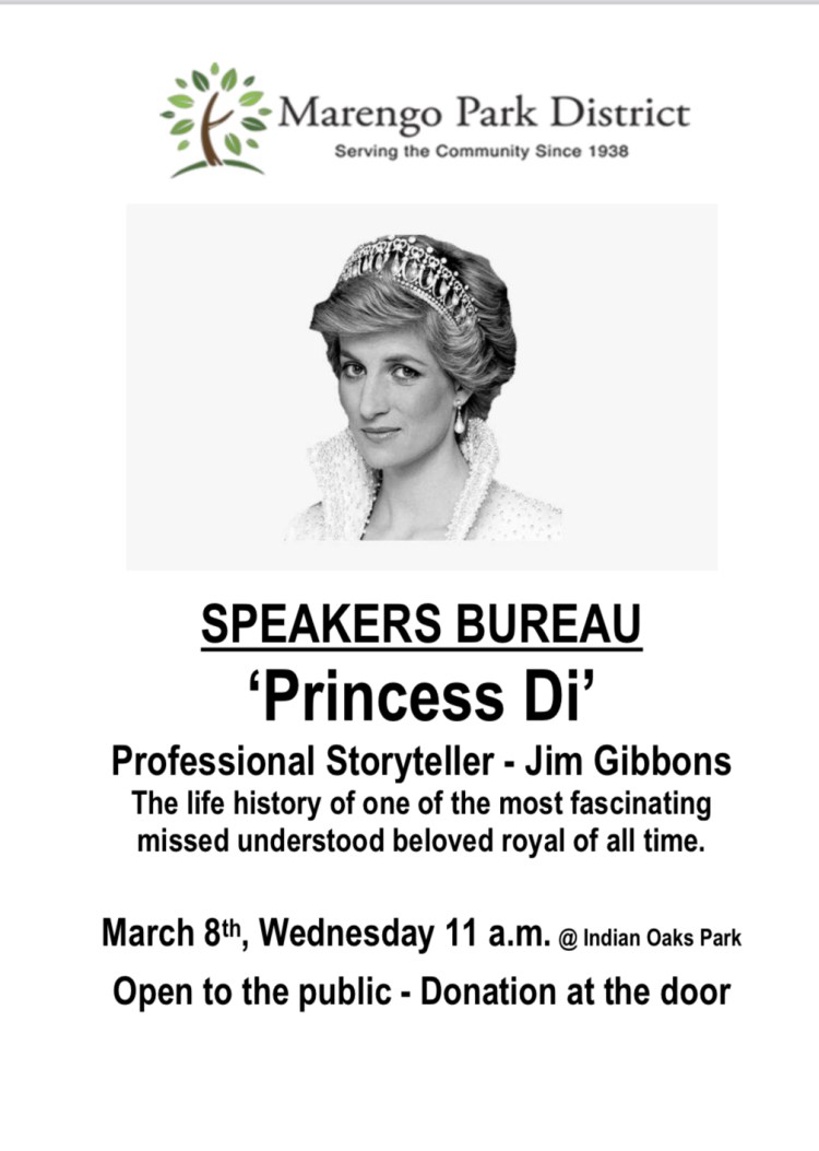 Michelle Gibbons will be subbing for her father, Jim who is recovering from surgery, and will provide an informational program about “Princess Di” this Wednesday at the park.