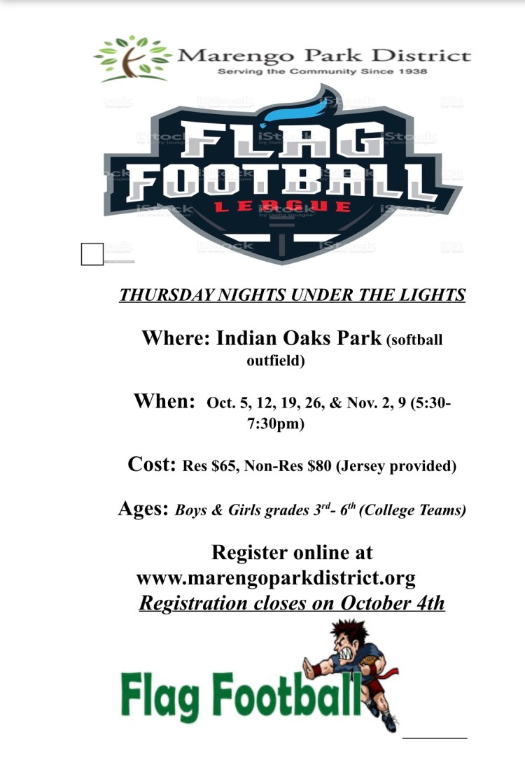 3rd-6th Graders Sign up for Flag Football now Posted byDan BertrandSeptember 13, 2023Posted inUncategorized Share this: Click to share on X (Opens in new window) X Click to share on Facebook (Opens in new window) Facebook Like Loading...