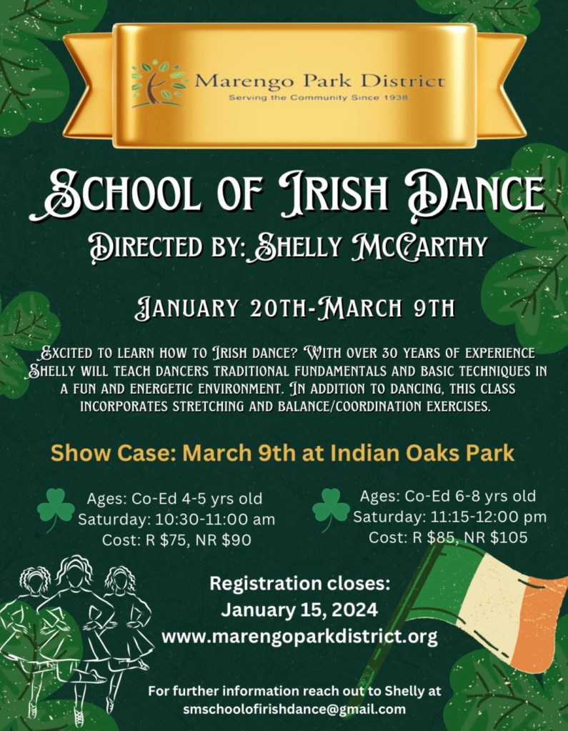Irish Dance Classes coming to the park Posted byDan BertrandDecember 3, 2023December 2, 2023Posted inUncategorized Share this: Share on X (Opens in new window) X Share on Facebook (Opens in new window) Facebook Like Loading...